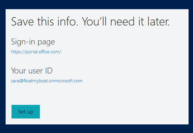I’ve never either saved this info nor needed it for later. If you’ve enter your actual e-mail address in the first step you will get an email with the name of your org (that is usually the thing you forget for some reason) so no reason to save. So in this page: Just click Set Up.