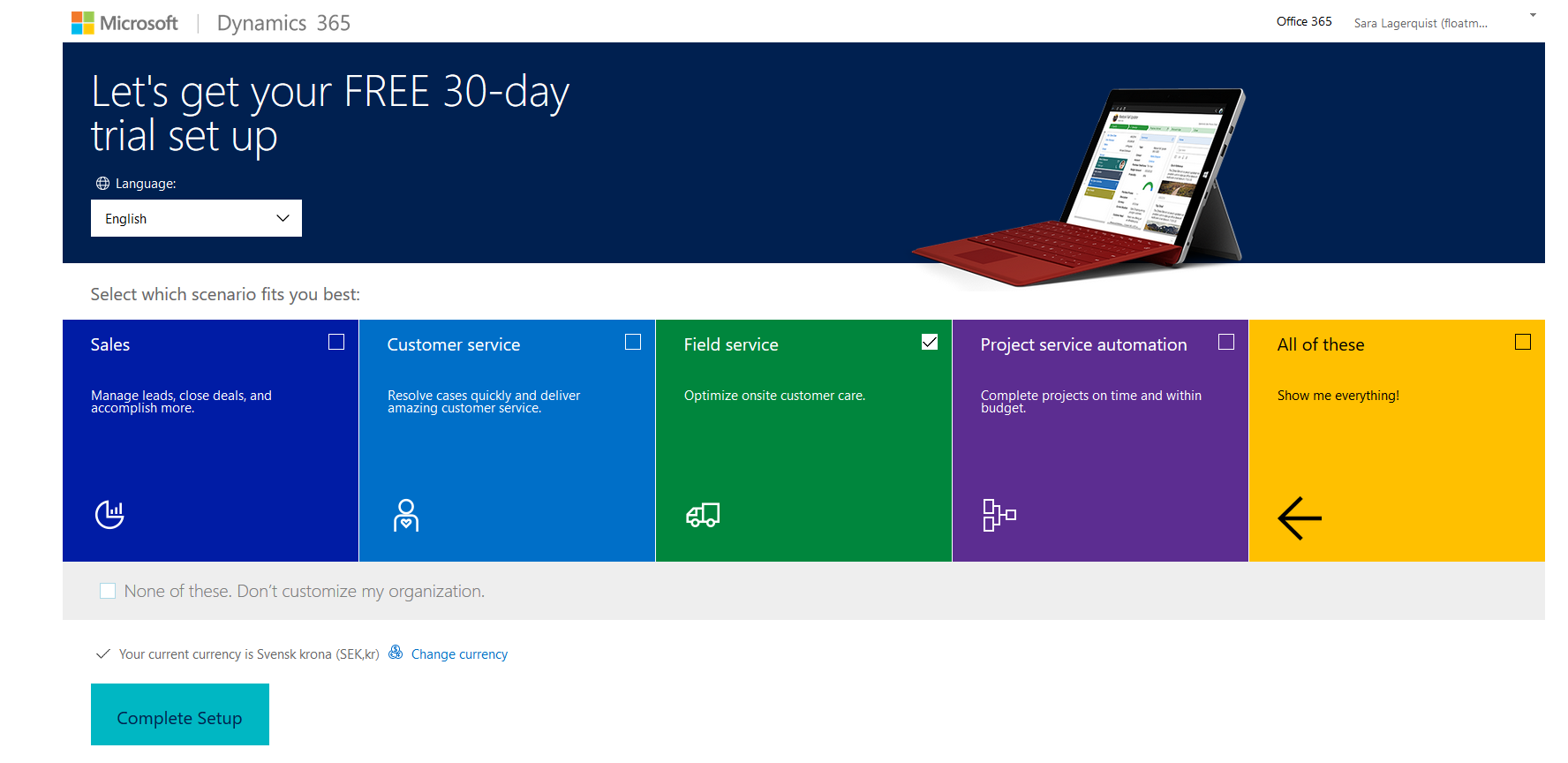 Sidenote: Even if you choose Sales or Customer Service you are most likely to end up with all four Customer Engagement First Party Apps installed. Seems as Microsoft want you to try out all apps every time no matter what you want.