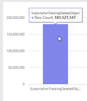 An interesting table started growing rapidly and we had no clue what this was, and I had during my now 15 years of working with Dynamics 365 never seen it. It was called SubscriptionTrackingDeletedObject. When I came back from my Swedish summer vaccation, it had grow to over an amazing 181M records. Time to fix this.
