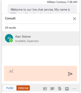 I kundens chattfönster visas inte den interna konversationen mellan Agent och Supervisor.