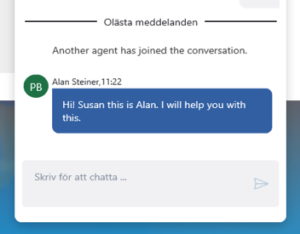 Agenterna kan enkelt chatta med varandra internt samt eskalera ärenden sinsemellan efter behov.